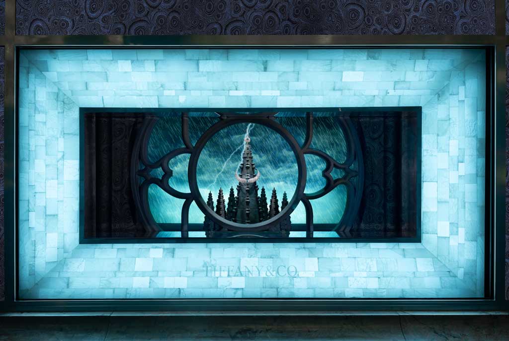 Una iluminación dramática transformó la Quinta Avenida y alcanza su punto máximo durante la noche. Los clientes pueden acceder a contenido exclusivo detrás de cámaras al escanear un código QR en las vitrinas.