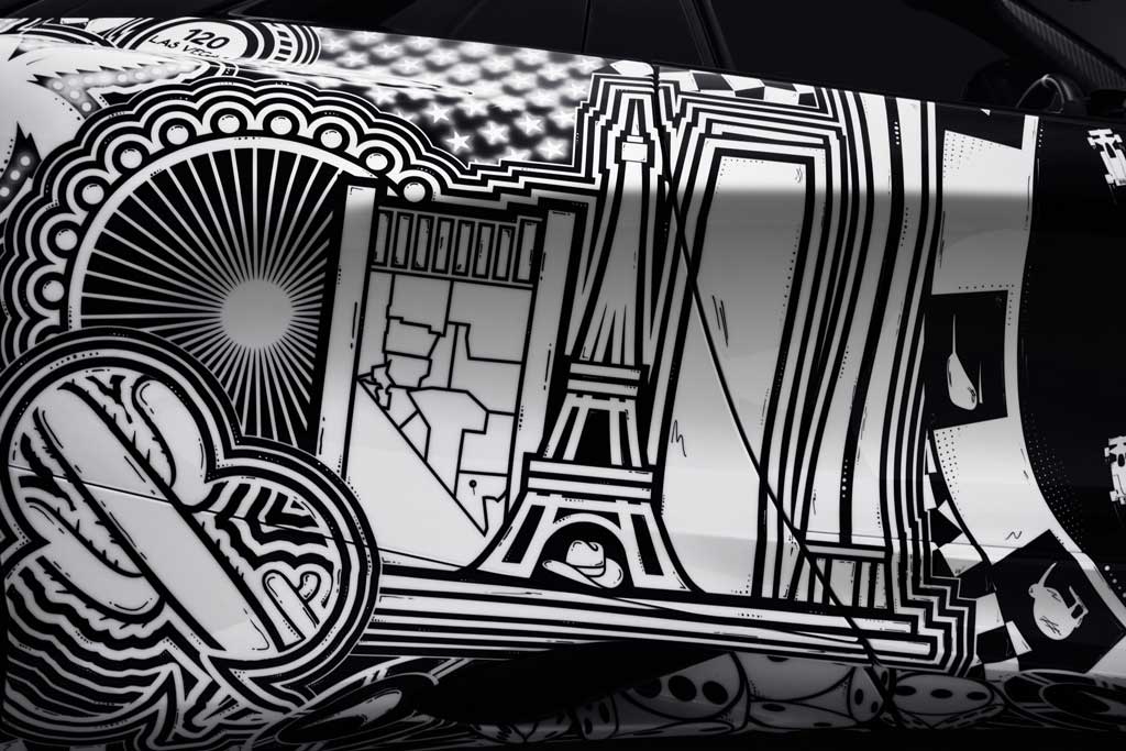 En lugar de recrear el brillo y los espectáculos a través del color, MSO traduce el ritmo, la arquitectura y la atmósfera de Las Vegas mediante líneas monocromáticas pintadas a mano. La decoración «Sketch in Motion» captura el dinamismo y la esencia de la ciudad, desde sus emblemáticos letreros y monumentos del horizonte hasta su vínculo con la música y las artes escénicas.