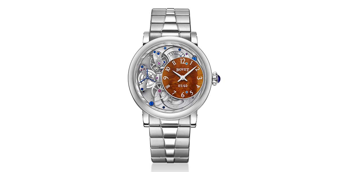 Este año, por primera vez en más de 200 años, Bovet presenta esferas de piedras semipreciosas: malaquita y ojo de tigre [foto inicial], en su colección Récital 12, el primer reloj de la maison con brazalete. Las vibrantes piedras aportan una nueva estética a este reloj versátil, cómodo y de uso diario.