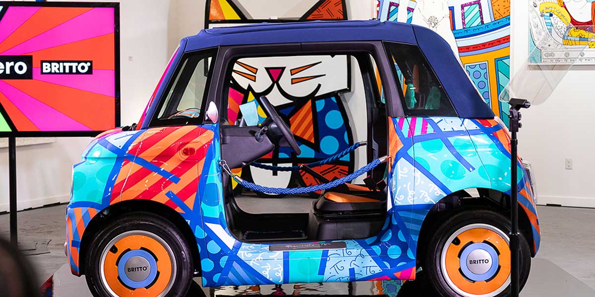 De la mano del artista Romero Britto, Fiat presentó Brittolino, la versión artística del Fiat Topolino.