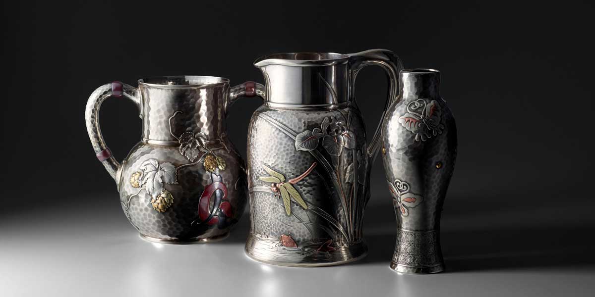 Las cinco obras de metal mixto presentadas en la subasta de Arte Decorativo y Diseño Moderno, Nueva York, el 17 de diciembre, provienen de una excepcional colección privada de Chicago y representan los mejores ejemplos del estilo japonés de Tiffany. Entre ellas se encuentra una magnífica jarra de agua, conservada en un estado excepcional, que ejemplifica las nuevas y suavizadas siluetas del período posterior a 1878.