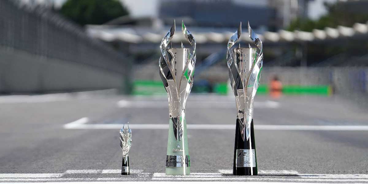 Los orfebres de TANE fabricaron cuatro trofeos, para cada uno de los tres puestos del podio y uno adicional para la escudería vencedora, en dos formatos diferenciados. Las dimensiones para el piloto y el constructor que logren el primer lugar son aproximadamente de 15×10×60 cm, mientras que los trofeos para el segundo y tercer sitio miden 12×10×46 cm.