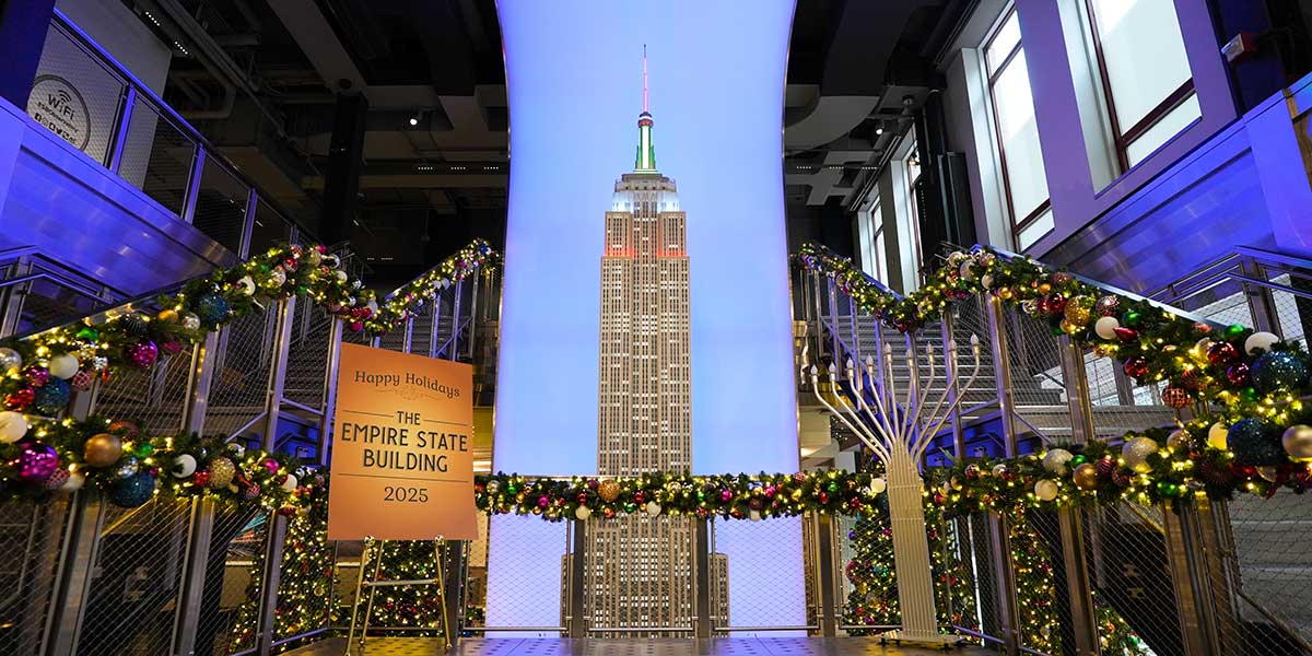 ▪ Iluminarán el cielo. Las icónicas luces de la torre del ESB brillarán durante toda la temporada navideña, con iluminaciones especiales para Acción de Gracias, Janucá, Navidad y Nochevieja. El edificio también estrenará su Espectáculo Navideño de Música y Luz.