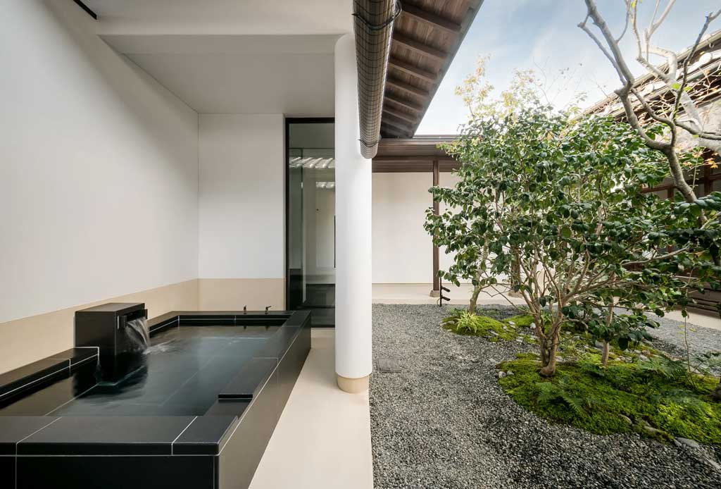 Ubicado en una residencia de mercaderes de kimonos de la era Meiji de 110 años de antigüedad, el diseño conserva vigas de madera, suelos de tatami y puertas shoji, mientras que las nuevas alas evocan fachadas de ladrillo rojo de estilo Meiji y Edo.