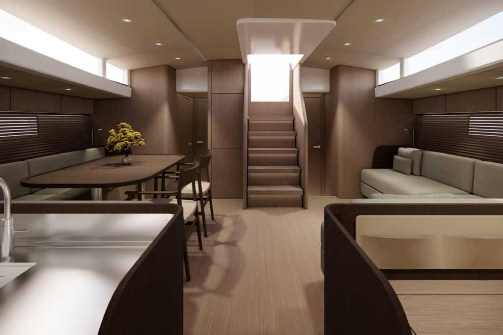 Con casi 20 metros de eslora (18.50 m) y manga de 5.75 m, este modelo redefine el segmento de los yates de 60 a 65 pies gracias a su versatilidad de configuración, la ligereza de su estructura en carbono epoxi y un interior capaz de transformarse al gusto del propietario.