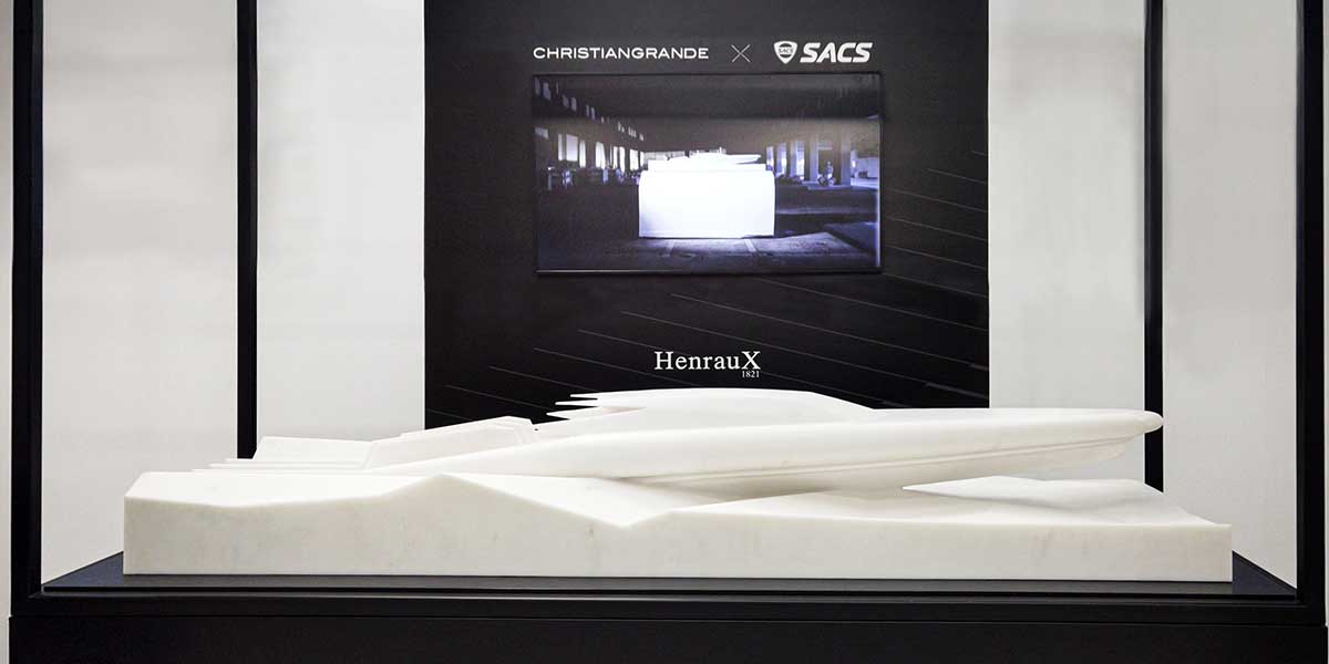 La escultura, diseñada por Christian Grande, fue elaborada por maestros artesanos de Henraux para Sacs Tecnorib, líder mundial en maxi-RIBs. La presencia de Mar Garrente en la Bienal reforzó el papel central del diseño en la filosofía de Sacs Tecnorib, donde la innovación y la emoción se expresan a través de una estética singular y audaz
