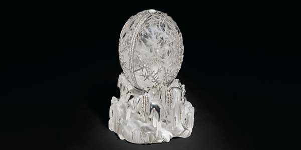 Adornado con más de 4,000 diamantes y con una caja de cuarzo blanco que se abre para revelar anémonas de madera finamente talladas, el Huevo de Invierno se encuentra entre los más suntuosos y artísticamente innovadores de los 50 huevos imperiales creados por la Casa Fabergé. Será puesto a subasta por Christie’s el 2 de diciembre.
