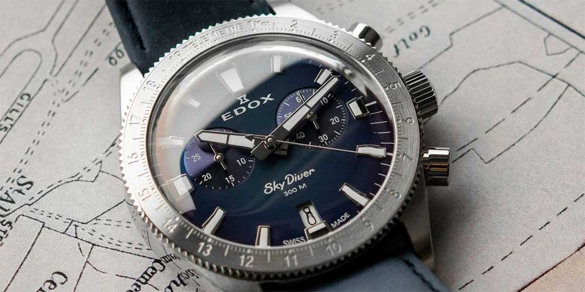 La maison suiza Edox tras una nueva joya para los amantes del tiempo y la aventura: SkyDiver Chronograph, una edición limitada de solo 1,000 piezas numeradas.