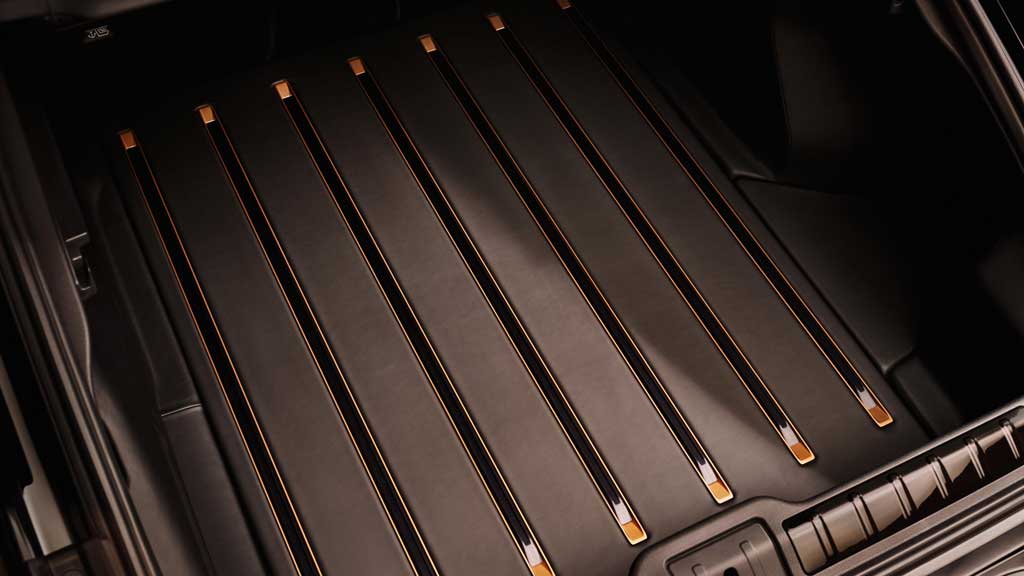 La experiencia culmina con detalles pensados para sorprender incluso al ojo más entrenado: molduras de puertas en aluminio negro cepillado con iluminación blanca, un estuche portallaves de cuero con costuras Avium, una bolsa para cable de carga en cuero con costuras Barrique y, en el maletero, un revestimiento íntegramente en cuero con la base decorada con escamas de oro.