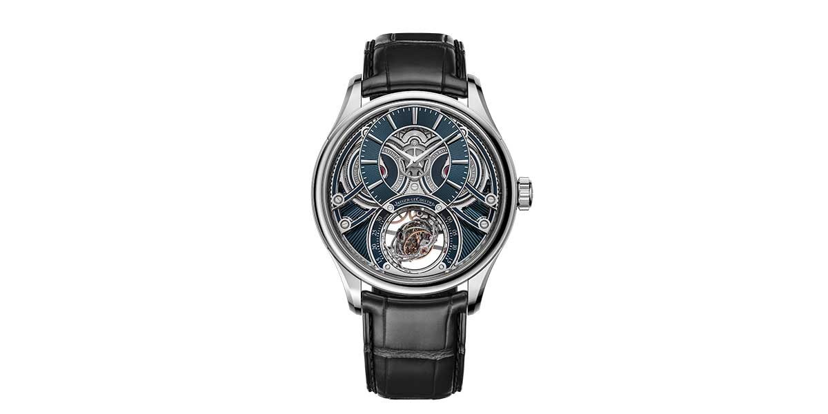 El resultado visual es tan hipnótico como técnico: un juego de volúmenes donde el azul translúcido del esmalte dialoga con el oro blanco, mientras el Gyrotourbillon, situado a las seis, acapara toda la atención con su danza tridimensional. Incluso el reverso, visible a través del cristal de zafiro, revela una arquitectura tan cuidada como el anverso, con puentes decorados y rubíes que aportan contraste cromático.