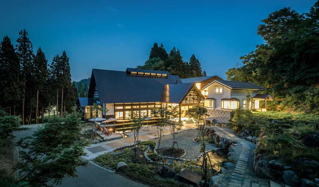 Japón. Con las montañas nevadas del valle de Ōsawa en Niigata como telón de fondo, la casa principal de Satoyama Jujo es una estructura de madera de 150 años de antigüedad, cuidadosamente restaurada, con muebles minimalistas de inspiración escandinava y obras de arte contemporáneo. La experiencia culinaria se centra en el restaurante Sanaburi, donde las verduras de montaña, las verduras silvestres y los productos locales cobran protagonismo. Los ingredientes se cosechan en los bosques y campos circundantes y se tratan con métodos de conservación tradicionales, exclusivos de la región nevada.