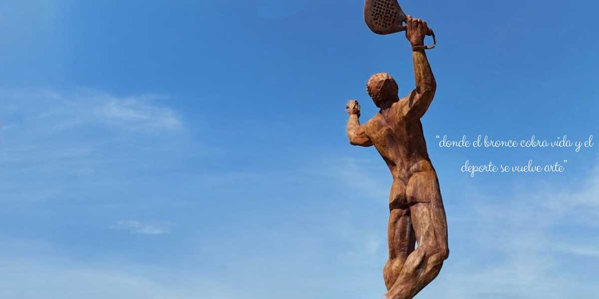 La escultura de tres metros de altura representa a un jugador de pádel, modelada inicialmente como una estructura de acero forrada de plastilina –con un peso aproximado de 250 kg–, con divisiones logradas con láminas de aluminio que separaron los diversos moldes o secciones del modelado, mismos que fueron empleados posteriormente para copiar en cera los diferentes registros y ser el principio del proceso de fundición.